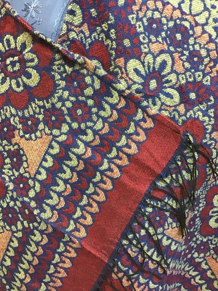 Wrap yourself in the warmth and spirit of the Southwest with this eye-catching poncho, crafted for comfort, character, and style. Featuring a rich blend of vibrant colors—sunset reds, desert oranges, turquoise blues, earthy browns, and deep charcoals—this poncho captures the essence of Southwestern landscapes and traditional patterns.